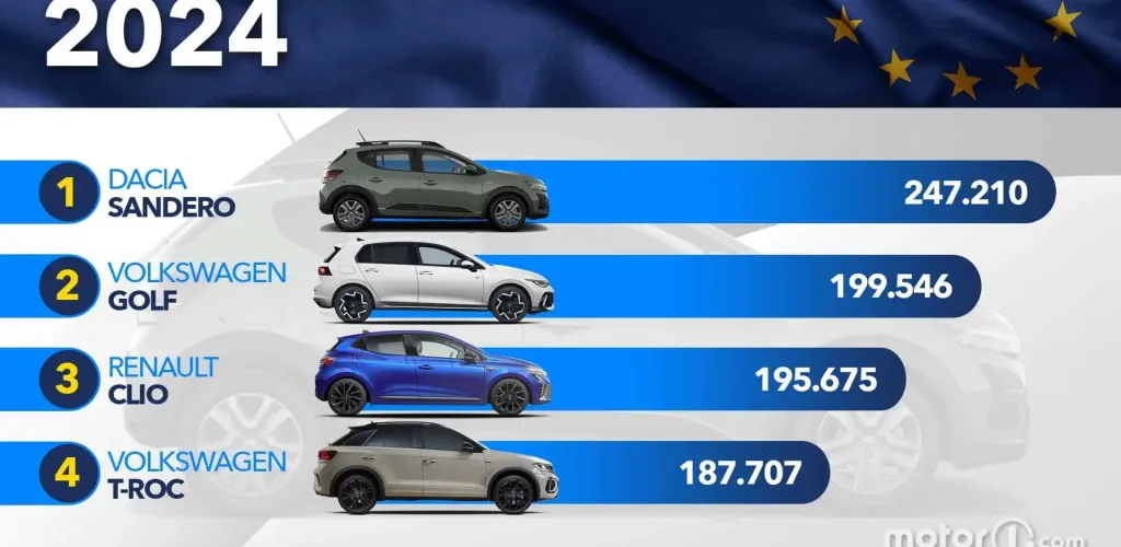 - Dacia Sandero a fost cea mai vândută mașină din Europa în 2024.