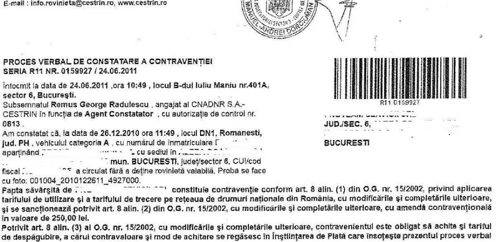 5. Rovinietă valabilă, amendă aplicată din eroare