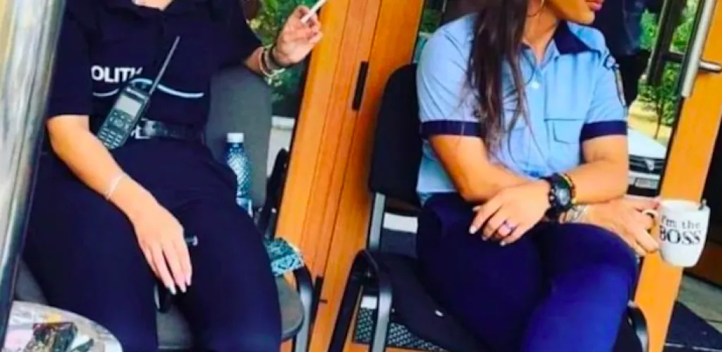 - Două polițiste în uniform, surprinse la cafele și țigări în timpul serviciului.