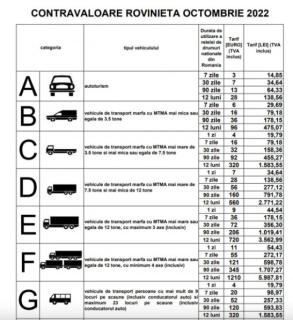 O sa atasam la final o poza cu preturile corecte pentru taxa de drum, pentru a putea consulta de fiecare data lista cand aveti nevoie sa aflati pretul corect.