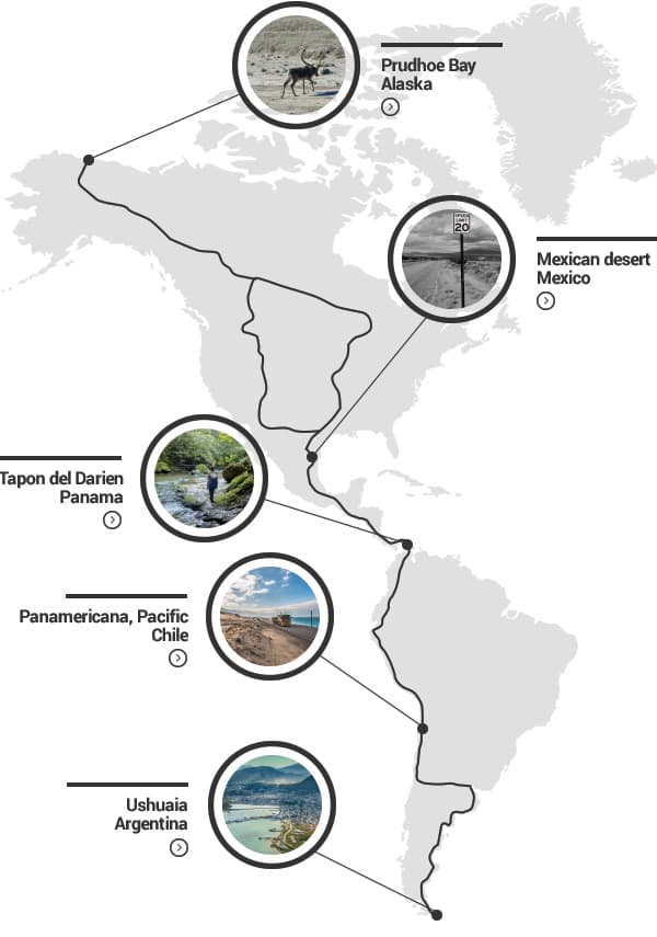 - Pornește din Prudhoe Bay, Alaska, și se termină în Ushuaia, Argentina.