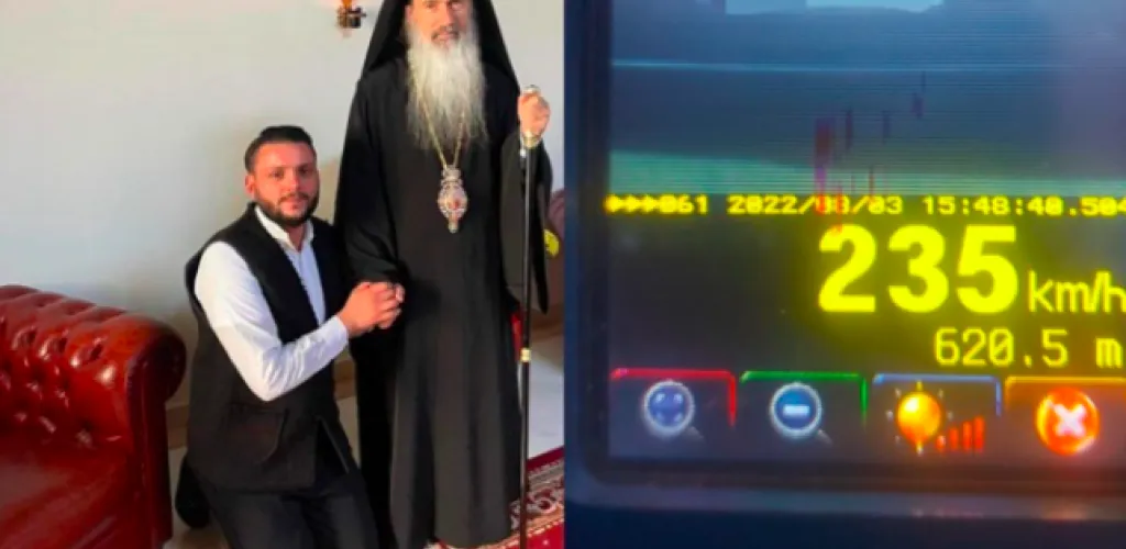 Potrivit comunicatului de presa emis de Politia Judetului Constanta, miercuri dupa-amiaza a fost depistat cu aparatul radar un conducator auto in varsta de 28 de ani care rula, la kilometrul 139 al Autostrazii Soarelui, cu viteza de 235 km./h. In baza acelorasi surse, pe locul copilotului se afla Inaltpreasfintitul Teodosie, Arhiepiscop al Tomisului.