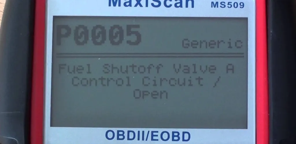 - P0005 semnalează circuit deschis al valvei de închidere a combustibilului.