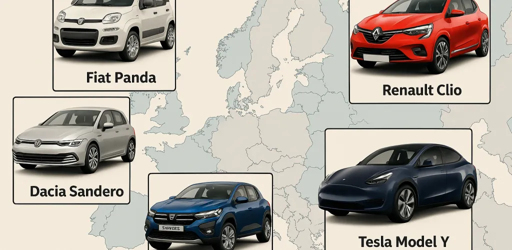 - Italia: Fiat Panda liderază, urmată de Dacia Sandero.