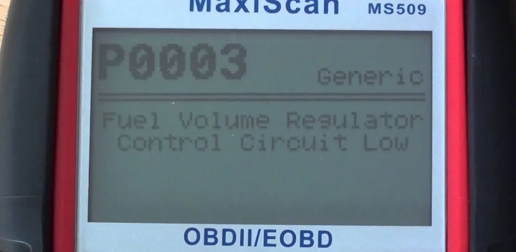 Codul P0003 semnalează că circuitul de control al regulatorului volumului și presiunii de combustibil funcționează cu tensiune scăzută. Acest indicator OBD-II se declanșează când modulul de comandă al motorului (PCM) detectează o tensiune insuficientă în circuitele electronice responsabile pentru reglarea exactă a volumului combustibilului livrat către motor.