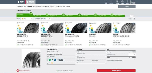 - Filtrarea afișează doar anvelopele compatibile cu mașina selectată.