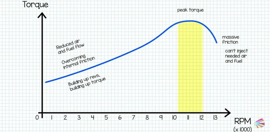 Cuplul, care măsoară forța de rotație, atinge valorile maxime mult mai devreme, la 1.600-1.700 rpm pentru majoritatea motoarelor moderne.