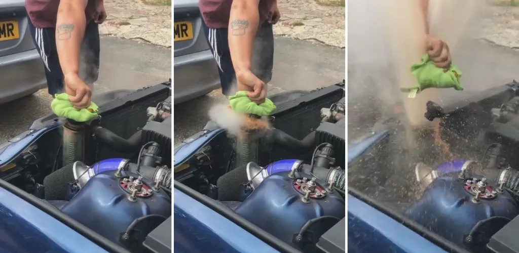 Praktisch gesehen, müssen wir, wenn wir mit einem solchen Problem konfrontiert werden, an einem sicheren Ort parken und anhalten. Man muss mindestens 15 bis 20 Minuten warten, bis der Motor abgekühlt ist, je nach Temperatur und wie viel wir gefahren sind. Erst danach kann man das Kühlmittel sicher hinzufügen. Der einfachste Weg, die Temperatur zu überprüfen, besteht darin, die Motorhaube des Autos zu berühren.