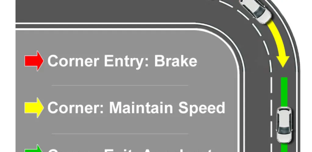 Wenn wir eine Kurve einleiten, ist das Fahrzeug noch darauf ausgelegt, aufgrund seiner Trägheit geradeaus weiterzufahren. Wenn wir nach rechts abbiegen, wird unser Körper nach links gedrückt und umgekehrt. Wenn das Bremsen zu einem Zeitpunkt erfolgt, an dem die Zentripetalkraft und die Zentrifugalkraft maximal wirken, verliert das Heck des Autos an Traktion und wird nach außen gedrückt. Zusätzlich zu dem Umstand, dass das Auto ohnehin weniger stabil in der Kurve ist, werden die Ergebnisse nicht gut sein, wenn wir das Bremsen, das den Schwerpunkt verändert, hinzufügen.