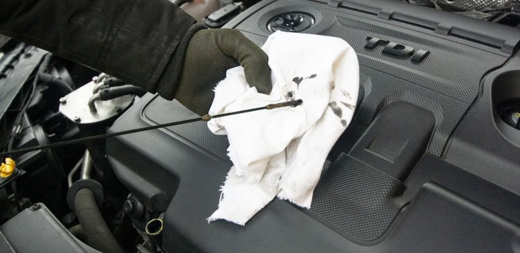 Nehmen Sie es jetzt wieder heraus und prüfen Sie den Stand. Wenn die Ölspur über der Höchstgrenze am Ölmessstab liegt, ist klar, dass Sie viel mehr Öl in den Motor einfüllen, als Sie sollten. Jeder Messstab hat eine minimale und eine maximale Stufe. Wenn Sie es zuerst nicht finden, wischen Sie den Ölmessstab vollständig ab und Sie werden die Kerben bemerken.