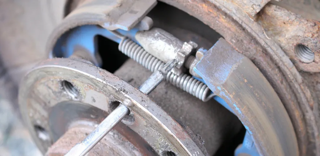 - Prüfliste: Bremsseile Rost, fehlende Rückholfeder, blockierter Schwenkarm, klemmender Kolben.