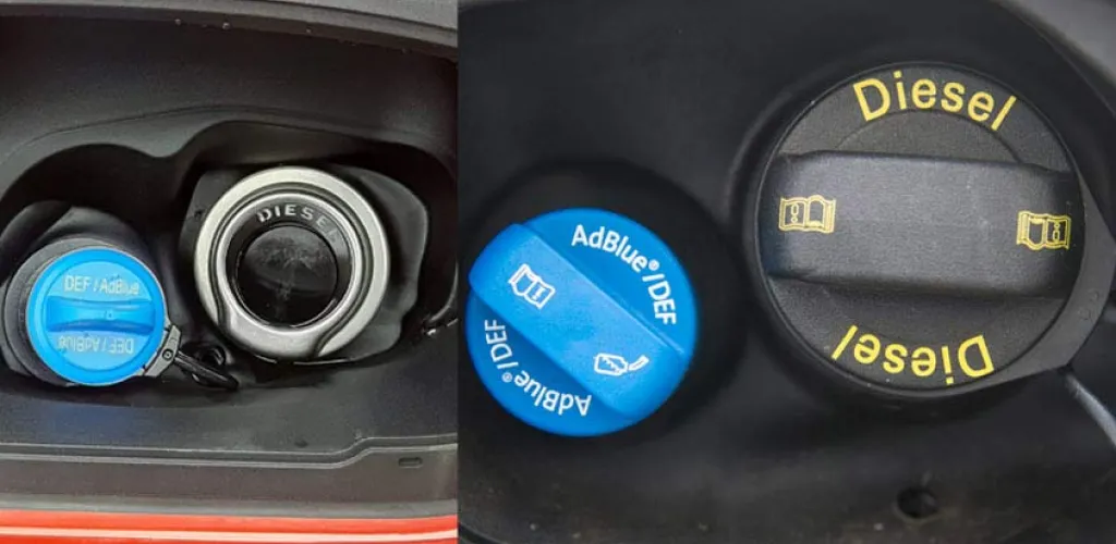 Leider besteht eine reale Möglichkeit, dass AdBlue im Kraftstofftank landet, da sich der AdBlue-Tank nahe dem Kraftstofftank befindet. Es ist jedoch wichtig, den Deckel für den AdBlue-Tank zu identifizieren, insbesondere weil er im Vergleich zum Kraftstoffdeckel kleiner ist.