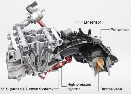 El motor tiene un colector de admisión de plástico de longitud variable y un turbocompresor refrigerado por agua BorgWarner KKK K03 integrado en el colector de escape de hierro fundido. El turbocompresor asegura una presión máxima de 0,8 bar. El combustible se entrega a través de un sistema de inyección directa de combustible, con inyectores de combustible de seis orificios controlados por solenoide secuencial.