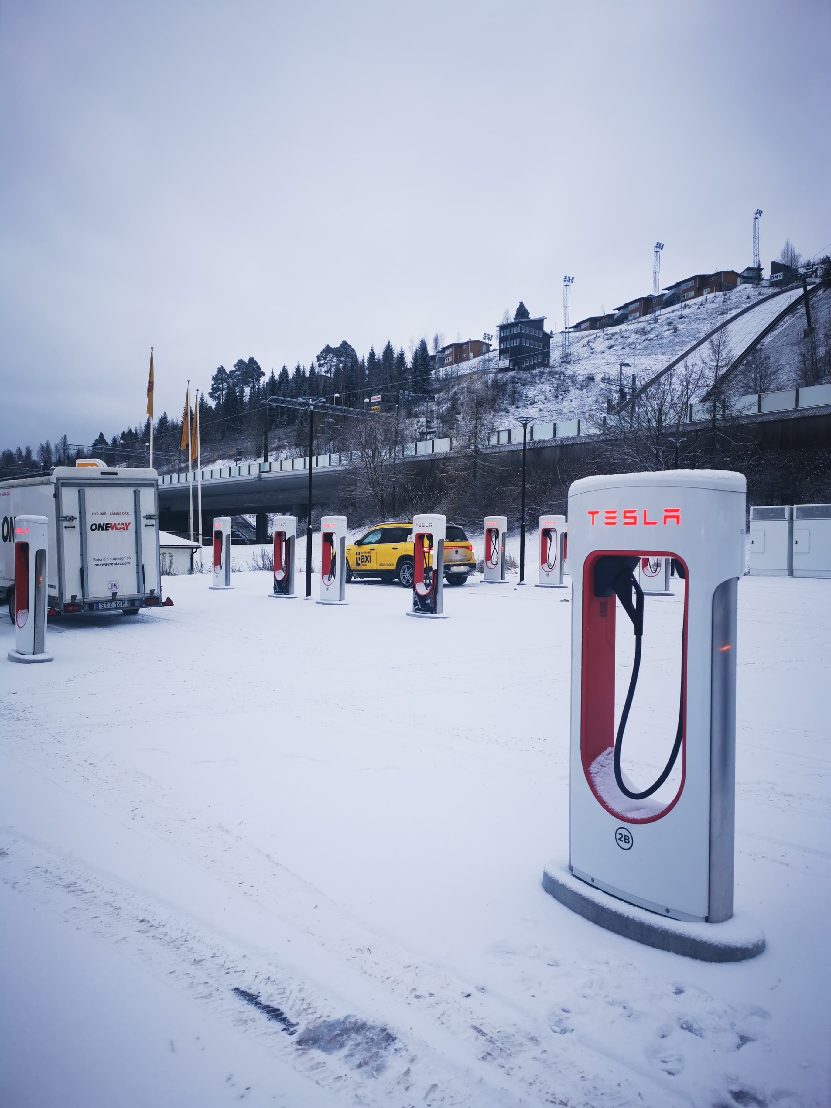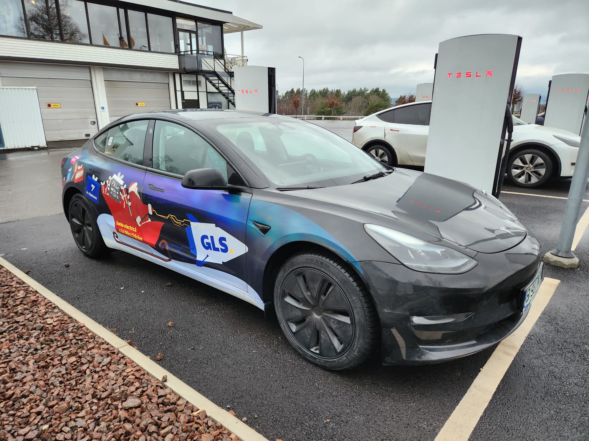 Revenim la subiectul articolului. Am avut 4 opriri, în 2 din ele nu a trebuit să stăm după mașină, ea s-a încărcat în timp ce noi eram la masă. O a treia oprire a fost tot pentru noi, cafea și dezmorțit 15 minute, însă neavând un alt supercharger în drum, a trebuit să stăm în mașină încă 12 minute, pe care le vom contoriza la timp pierdut.