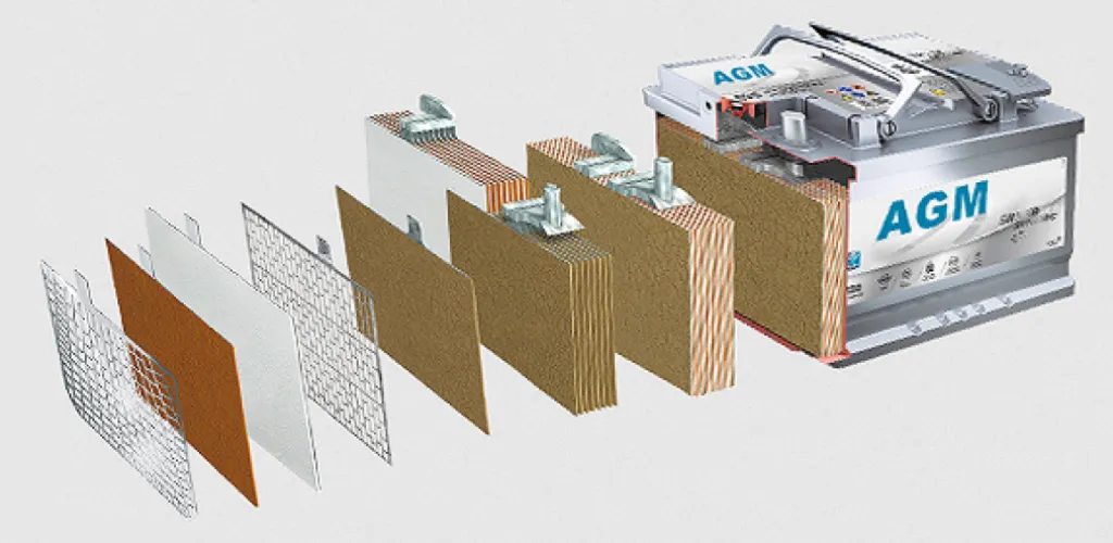 Másrészről, egy AGM akkumulátor még mindig tartalmazza az ólomlemezeket és a kénsavas-vizes oldatot, de a hagyományos akkumulátorral ellentétben egy nagyon porózus üvegszálas hálót is tartalmaz, amely elválasztja ezeket a lemezeket egymástól. Ez a szőnyeg aktívan nyomást gyakorol a lemezekre, és rögzített pozícióban tartja őket, ami lehetővé teszi, hogy több lemezt helyezzünk el az akkumulátorban, még akkor is, ha a méretek változatlanok maradnak. A folyadék továbbra is ezekben az üvegfalakban van tárolva, így nincs szükség beavatkozásra.
