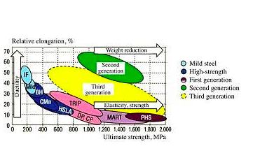 La produzione automobilistica moderna richiede standard di sicurezza e ambientali più elevati, necessitando di carrozzerie “più resistenti e leggere”. L’acciaio avanzato ad alta resistenza si è sviluppato in queste condizioni ed è ampiamente utilizzato nei componenti strutturali e di sicurezza delle carrozzerie.