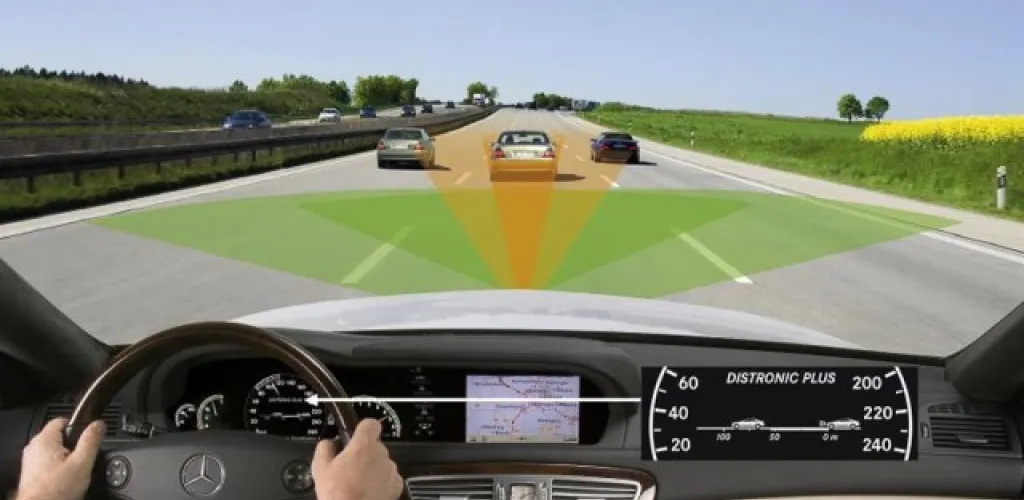 La tecnologia per la distanza di sicurezza deriva dal noto sistema di controllo della velocità di crociera, al quale è stato aggiunto un sensore radar. Rileva immediatamente il traffico intenso davanti e riduce automaticamente la velocità in base al traffico.