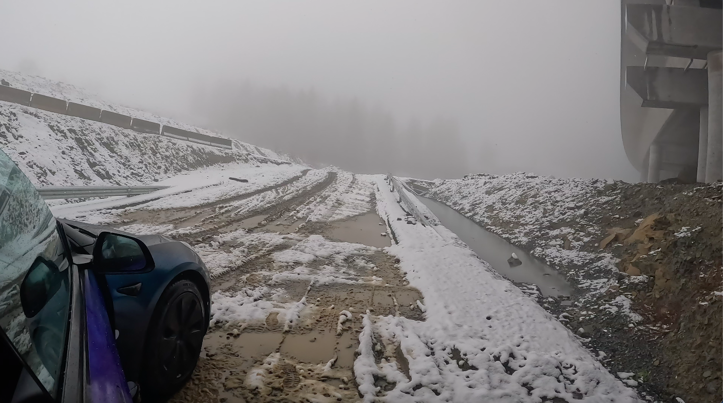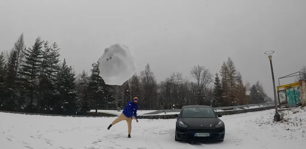 Alex a fost extrem de nerăbdător să afle câte ceva despre limitele și senzațiile pe care Tesla le are în arsenal, iar Adi s-a bucurat ca un copil mic pentru prima zăpadă atinsă în ultimii 4 ani.