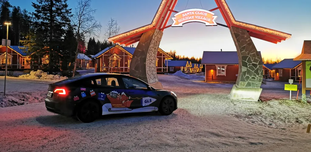 După 6 zile de condus, minim 8 ore pe zi, după peste 4000 de km, după 6 cazări diferite, după 18 opriri la stații de încărcare și o călătorie cu ferryboatul, ne-am văzut ajunși la intrarea în satul lui Moș Crăciun.