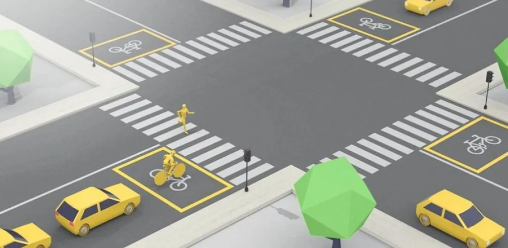 Implementarea acestui marcaj schimbă dinamica intersecțiilor semaforizate prin introducerea unei zone dedicate exclusiv bicicliștilor și utilizatorilor de trotinete electrice.