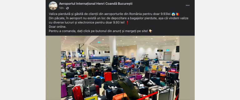 - O pagină falsă pretinde vânzarea bagajelor pierdute la 9,93 lei.