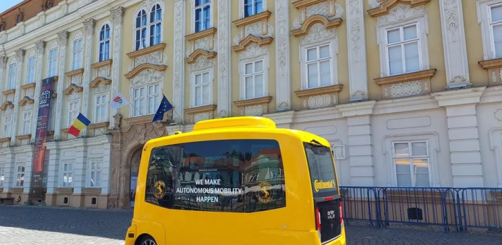 Testarea vehiculului autonom a avut loc in Piata Unirii din Timisoara, unde cateva sute de oameni au fost martorii experimentului deplasarii in mijlocul de transport fara conducator auto.