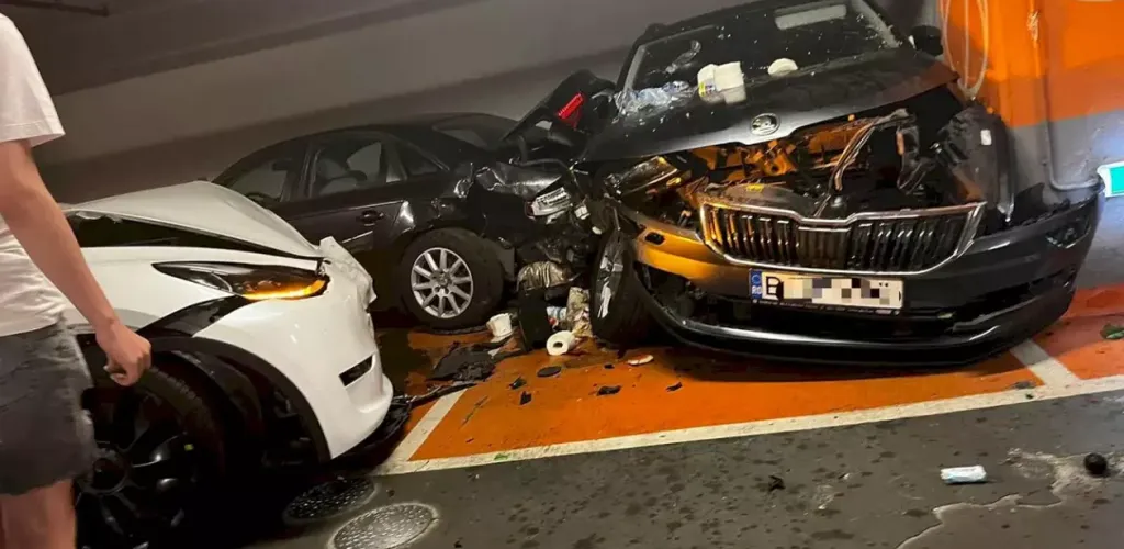 Accidentul s-a produs în parcarea mall-ului Sun Plaza, un loc aglomerat, mai ales în weekend. Conform martorilor, șoferița a accelerat brusc, confundând pedala de frână cu cea de accelerație, și a lovit violent două mașini parcate. Impactul a fost suficient de puternic pentru a provoca daune semnificative autoturismelor implicate și a rănit copiii aflați în mașină.