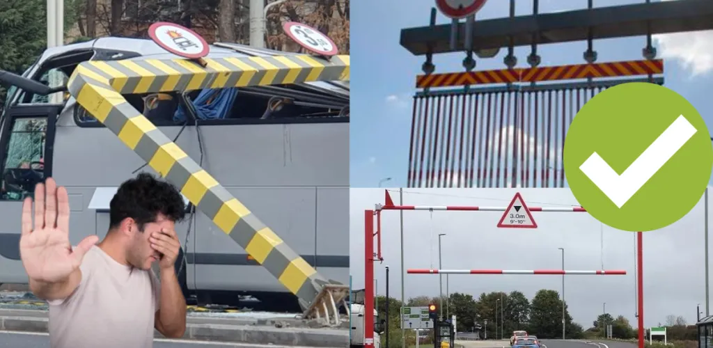 Cu alte cuvinte, oamenii astia voiau ca acea poarta sa stea nemiscata si sa rada tot acoperisul autocarului cu tot cu frezele oamenilor din interior, in loc sa il gandim ca o masura de atentionare. Deci problema pe care o vad specialistii in siguranta este ca poarta aia nu a fost ancorata in 20 m3 de beton. Sa stea atat de bine incat nici sa nu se clinteasca la cel mai mare impact, pasajul sa fie intreg, autocarele sa se strice, soferul sa fie de vina. Ok soferul a gresit-o dar ce vina a avut pasagerul care a murit? Venim si noi cu o propunere. Limitatoare ca in pozele de mai jos. Si cel mai obosit si prost sofer se prinde cand da cu autocarul in 20 de bari de metal care freaca tot acoperisul. Daca nu s-o prinde el, vreun pasager o auzi zgomotul ala infernal si s-o duce pana la sofer sa ii zica sa opreasca. In orice varianta, daca s-ar fi folosit astfel de porti si nu unele gandite sa nu le miste nici tancul, poate oamenii din autocar ar fi fost intregi acum. Asta asa, ca tot se vrea o tara ca in afara, macar sa invatam ceva de la ei.
