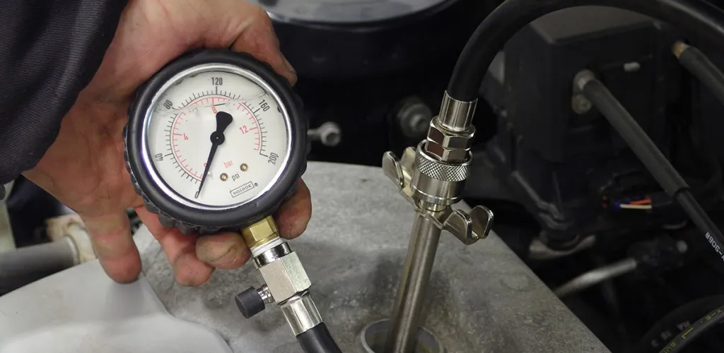 - Do pomiaru używa się manometru podłączonego do świecy każdego cylindra.