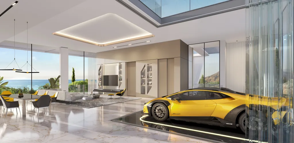 Inspirate de estetica Lamborghini, vilele combină linii curate și dinamice cu materiale de cea mai înaltă calitate. Fiecare vilă reflectă excelența și sofisticarea mărcii. Utilizarea materialelor premium, precum marmura și pielea, adaugă un plus de lux interioarelor. Ferestrele mari oferă panorame spectaculoase ale Mării Mediterane și peisajului andaluz, creând o atmosferă deosebită de eleganță și rafinament.