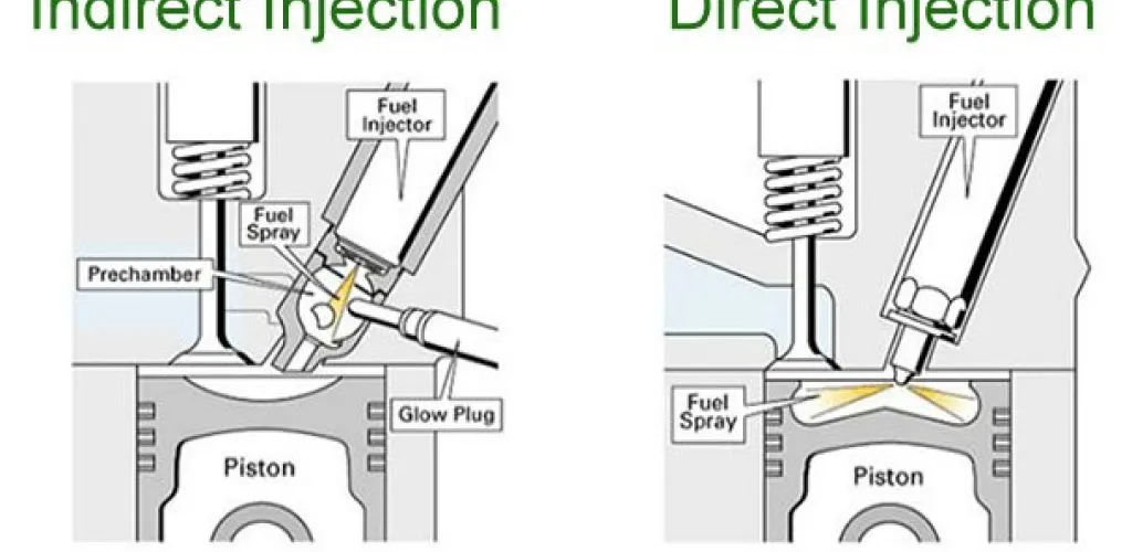 - Injecția directă: injectează în camera de combustie; diesel se autoaprinde