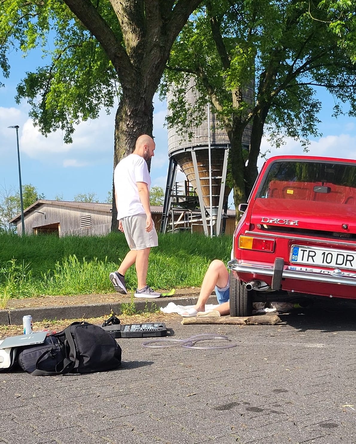În toată agitația noastră nu ne-am dat seama că dacă circuitul se închide la 7-30, la 7-31 băieții se întorc înapoi în oraș. Și cumva Dacia noastră parcă tot drumul a cedat ca să ne protejeze de ceva. Știu că sună stupid, dar așa am simțit. În Budapesta ne-a tras 30 de minute pe dreapta și datorită acestei opriri am evitat grindina, în Germania am scăpat de multe ștauri pe care le-am evitat prin parcări de tir-uri și multe exemple de genul.
