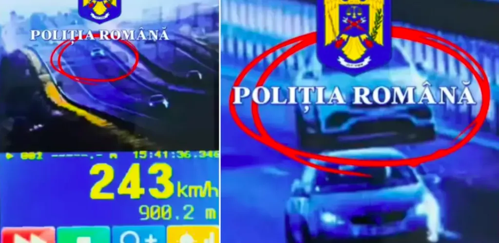 - Șoferul a fost prins circulând cu 243 km/h pe autostrada A3, Brașov.
