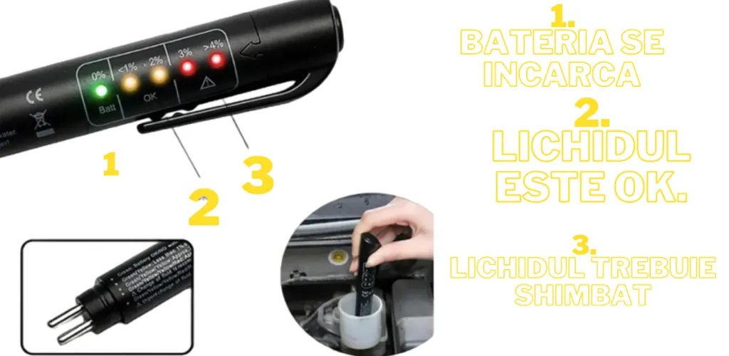 - Poziționarea: Introduceți sonda în rezervorul de lichid de frână