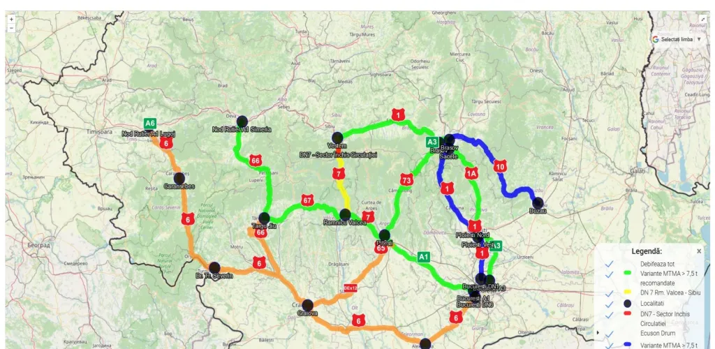 - Rutele de ocolire sunt DN1, DN7 și DN67, semnalizate corespunzător.