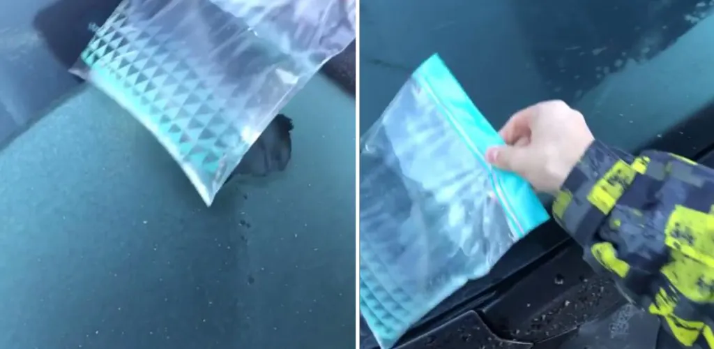 Umple o punga pentru sandviciuri cu apa fierbinte, nu fiarta. Dupa cum ne demonsteaza influencerul Instagram @larajoannajarvis, tot ce ai nevoie este o punga care se poate inchide etans si putina apa fierbinte. Puneti apa in punga si doar plimbati incet punga peste parbrizul inghetat. In doar cateva secunde se va curata tot parbrizul.