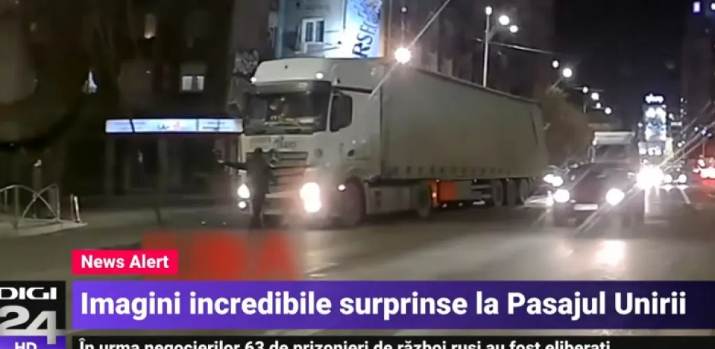 - Un șofer oprește un TIR înaintea pasajului Unirii, semnalează obstacol